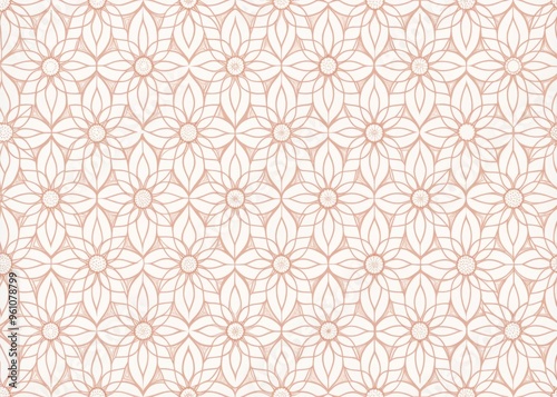 Illustrate a geometric light pink flower pattern on a white background, with clean lines and modern styling, suitable for contemporary graphic design and visual art.