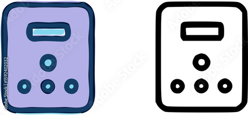 Illustrated icon of a power outlet with a display, in color and outline styles.