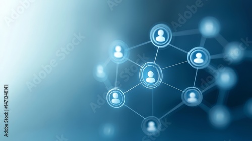 Illustrates network of interconnected user icons on gradient blue background visually representing social network