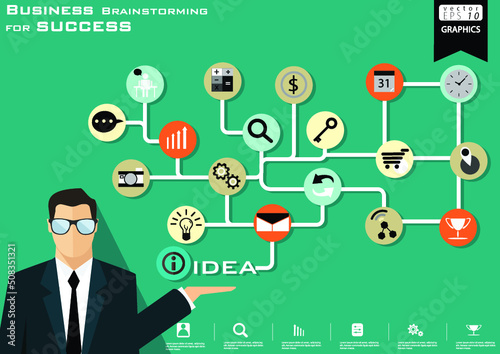 Illustration business.design modern idea and concept think creativity. for brainstorm,Social network,success,plan,think,search,analyze,communicate, futuristic idea innovation technology.