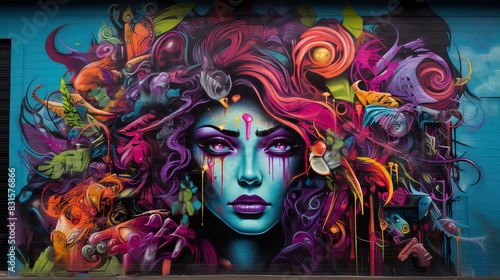 Illustration design of local art and street art movements, with a green background and colorful flowers