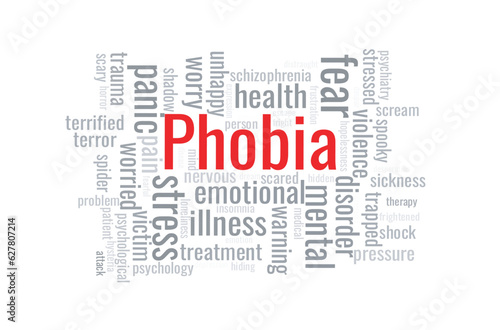 Illustration in the form of a cloud of words related to Phobia.
