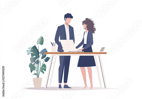 illustration is ideal for business presentations, marketing materials, or team-building concepts. It conveys teamwork, professionalism, and a positive work environment