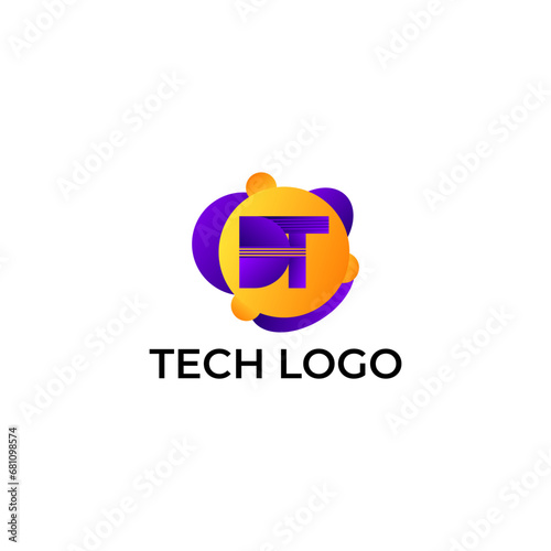 ILLUSTRATION LETTER D T WITH GRADIENT ORANGE PURPLE COLOR CIRCLE DOT TECH LOGO ICON TEMPLATE DESIGN VECTOR