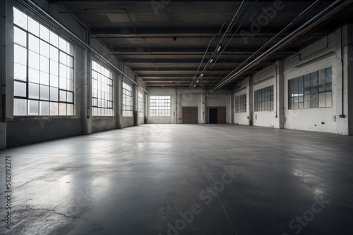 Illustration of a empty concrete warehouse - Created with Generative ai