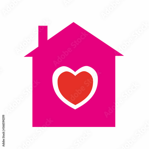 Illustration of a house with a sign in the form of a heart, a symbol of a heart and a house isolated on a white background, a template for your design for Valentine's Day