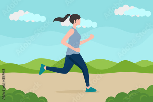illustration of a beautiful girl jogging in the park.