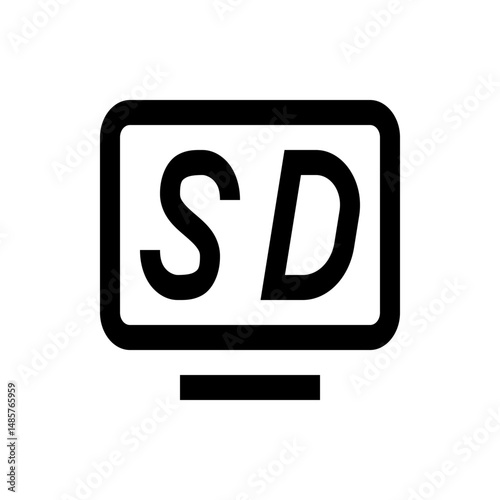 Illustration of a black and white monitor displaying the letters sd with a rectangular base design element