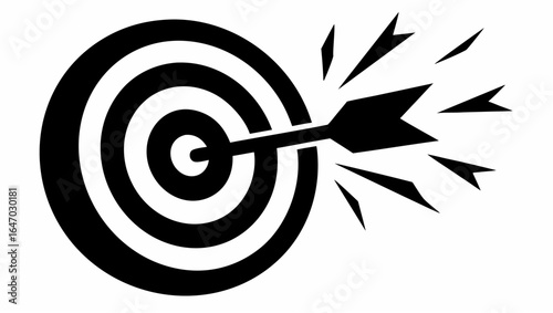 Illustration of a black and white target with an arrow in the center and motion lines on the right side
