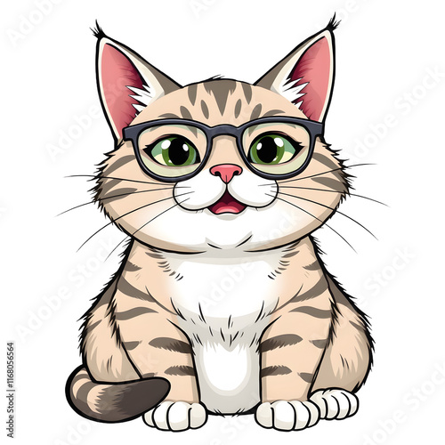 Illustration of A cat sitting upright with a funny expression, wearing glasses. png isolated background. transparent background.