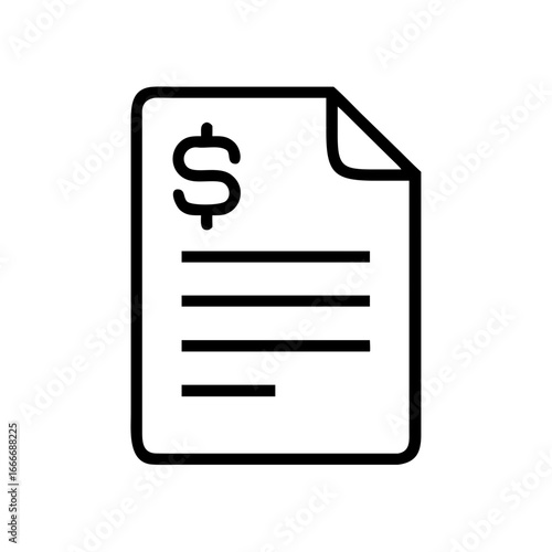Illustration of a document with a curled corner and a dollar sign indicating financial content on page