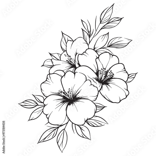 Illustration of a Flower Bouquet with Leaves on a White Background