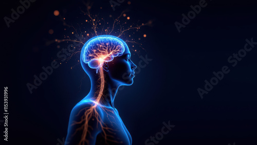 Illustration of a human body with the Vagus Nerve highlighted as a lightning bolt emanating from the head.