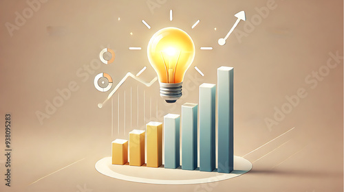 Illustration of a lightbulb symbolizing ideas and innovation with a graph representing business growth and creative solutions