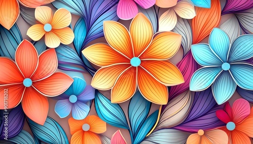 Illustration of a pattern featuring stylized flowers. Vibrant Floral Pattern with Bold Colors. Background. 2