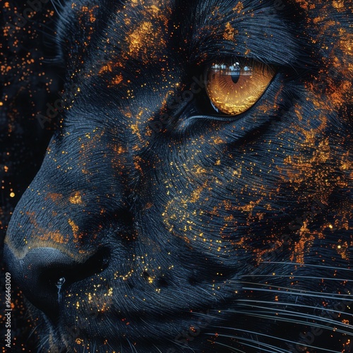 Illustration of a puma with dynamic gold strokes on a dark, textured background