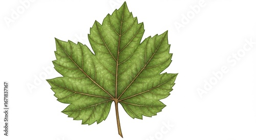 Illustration of a single green leaf with brown veins and stem, centered on a white background.