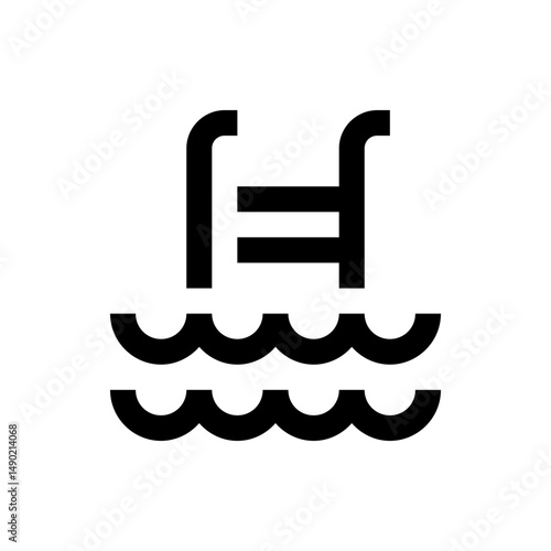 Illustration of a swimming pool ladder above wavy water in black and white simple design style image