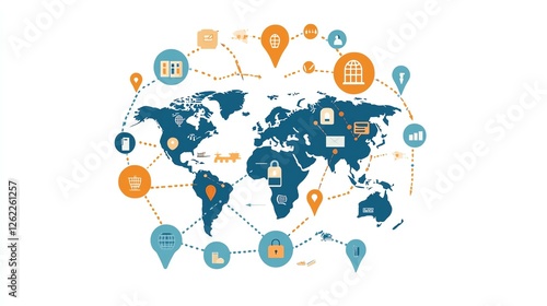 Illustration of a world map showcasing global connectivity and technology hubs.
