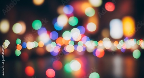 Illustration of abstract colorful bokeh lights background with shallow depth of field, perfect for festive celebrations and holiday themes