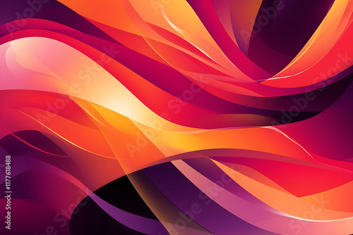 illustration of abstract shapes and patterns, featuring flowing curves, diagonal lines, and overlapping shapes in bright, contrasting colors. The design has a dynamic and energetic feel.