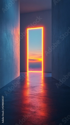 Illustration of an empty room with a light blue wall with a rectangular opening in the background. Empty room in minimalist style.