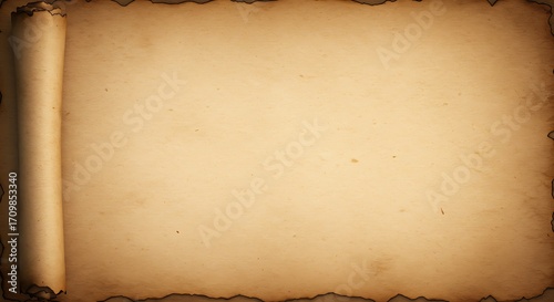 Illustration of an unrolled parchment scroll with burnt edges and a textured surface