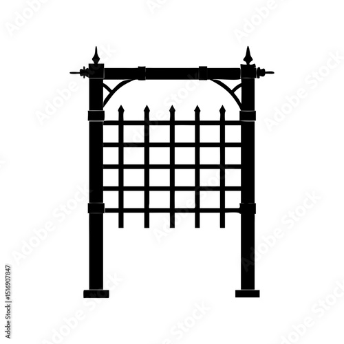 Illustration of black wrought iron gate fence metalwork design element architecture security barrier decor