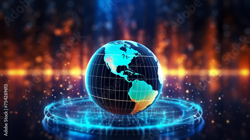 Illustration of digital earth with network lines and data points symbolizing global connectivity and information exchange on circuit board