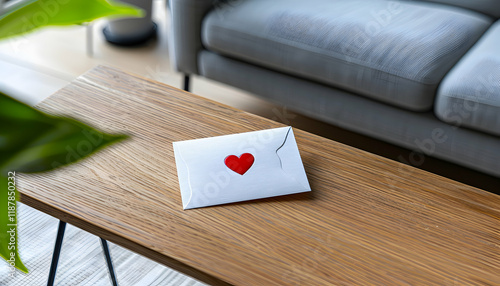 Illustration of Love Letter with Red Heart Seal on Wooden Table