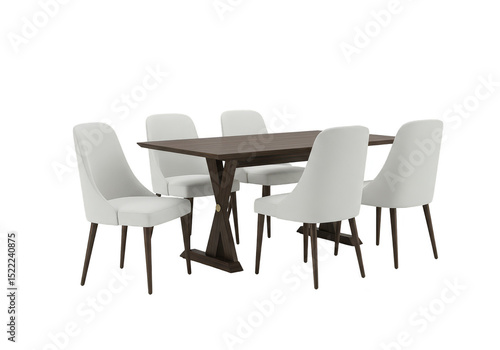 Illustration Of Modern Dining Table With White Chairs Transparent Background