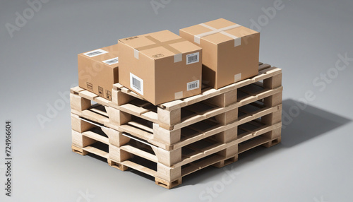 Illustration of multiple boxes on a wooden pallet isolated on white background
