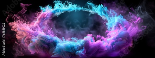 illustration of neon smoke exploding outwards with empty center. Dramatic smoke or fog effect for spooky, hot lighting ring circle