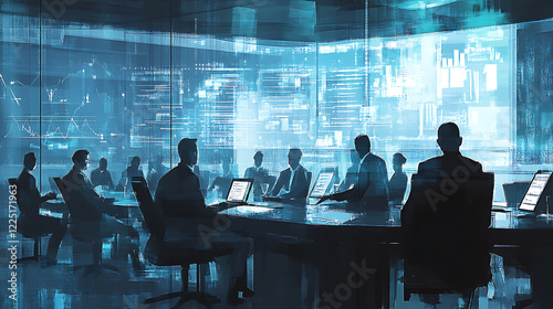 Illustration of professionals analyzing customer feedback data in a modern meeting room