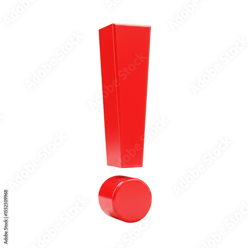 Illustration of Shiny Red 3D Exclamation Mark Danger Symbol on Transparent Background