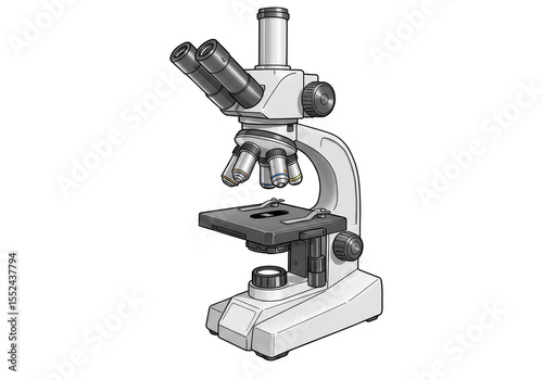 Illustration of White Microscope for Scientific Research on Transparent Background