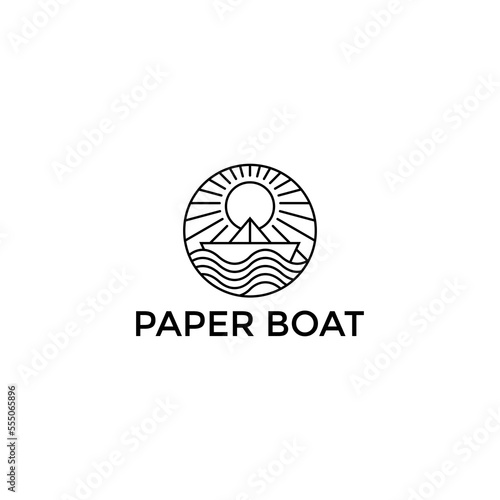 illustration vector graphic sailboat logo design minimalist with circle and waves beach