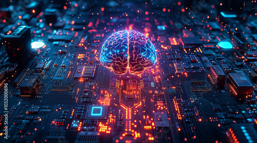 illustration view of brain with computer tech circuit board.