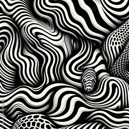Illustrations of "Monochrome Animal Skin Patterns with Optical Illusion Effects"
