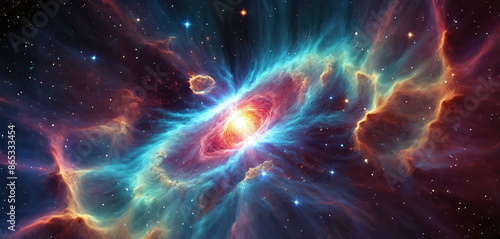 Illustrative depiction of a bright supernova explosion, the end of a star in the universe