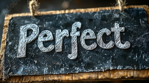 Image of a chalkboard sign featuring the word 'Perfect' in a hand-drawn and rustic style, epitomizing simplicity and hand-crafted charm ideal for decor themes.