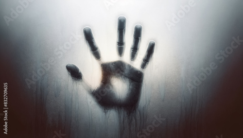 Image of a hand mark left on foggy glass.