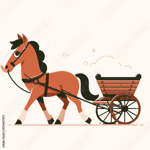 image of a horse pulling a cart with a simple and minimalist flat design using a white background
