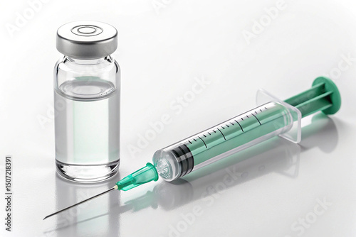 Image of a sterile syringe filled with fluid and a sealed glass vial, symbolizing modern vaccination, medical injection procedures, and health protection tools