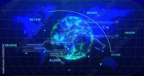 Image of digital data processing over globe and computer circuit board