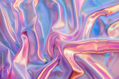 Image of Holographic iridescent effect silk material. Texture for background usage