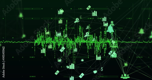 Image of network of connections with icons over dark background