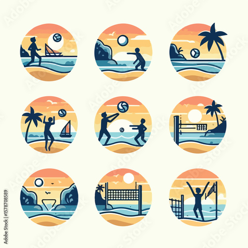 image of playing beach volleyball with a simple and minimalist flat design using a white background