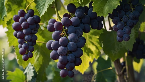 image space copy for ideal vine on leaves green with bunch Grapes.