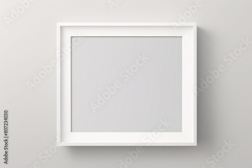 Imagen mínima de marco cuadrado blanco vacío simulada colgada sobre fondo de pared blanca con luz y sombra de ventana. aislar imagen